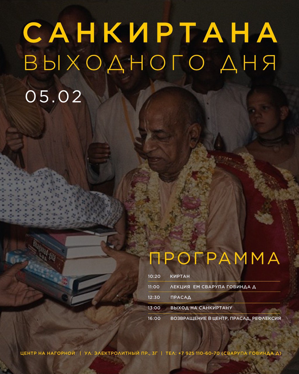 Приглашаем вас в воскресенье 05 февраля на еженедельную программу «САНКИРТАНА ВЫХОДНОГО ДНЯ НА НАГОРНОЙ» Ждем вас в 10:20🙏