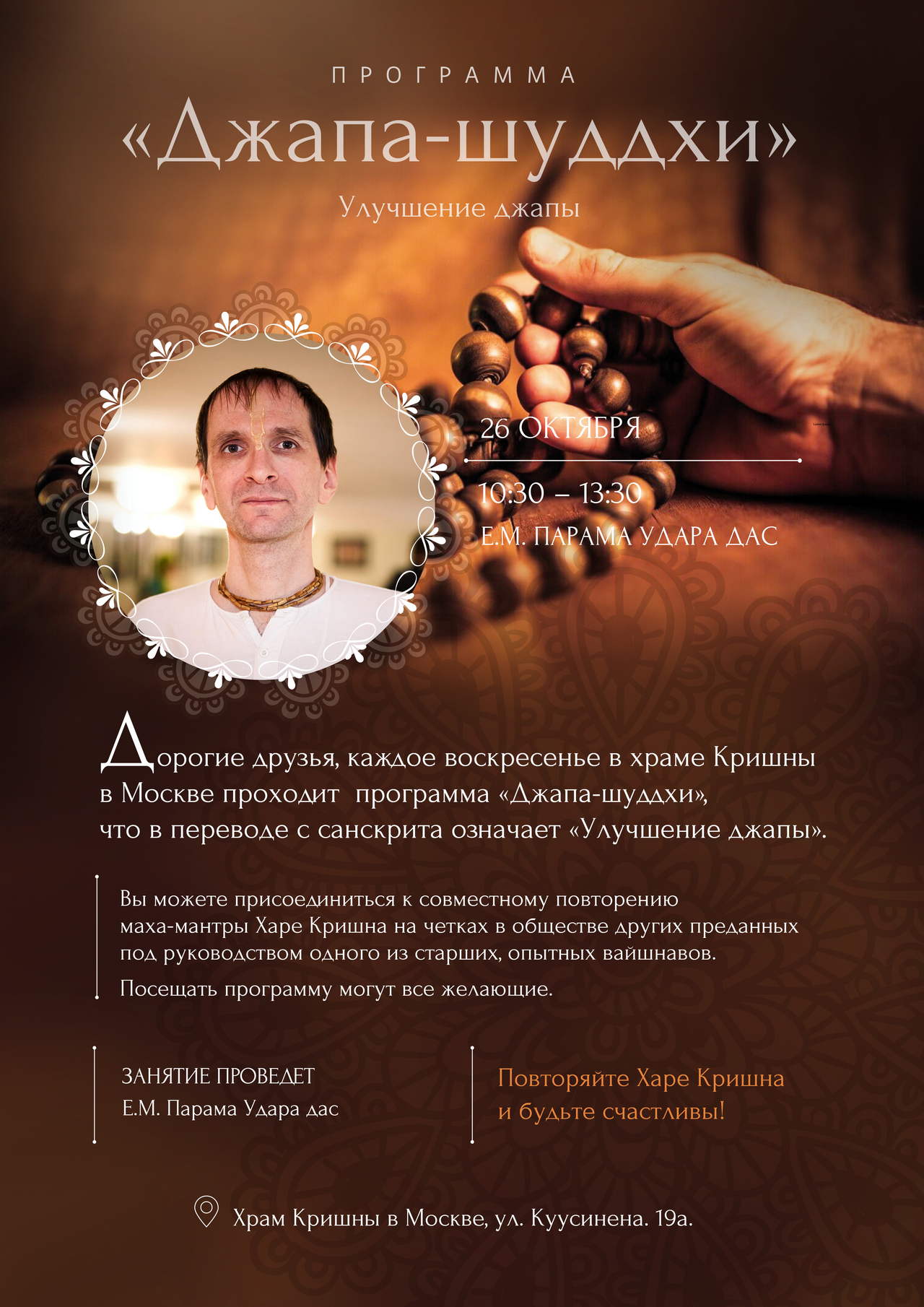 | 💥 Харе Кришна! Дорогие друзья, 26 октября приглашаем вас на занятие «Джапа-шуддхи», что в переводе с санскрита означает «Улучшение джапы».