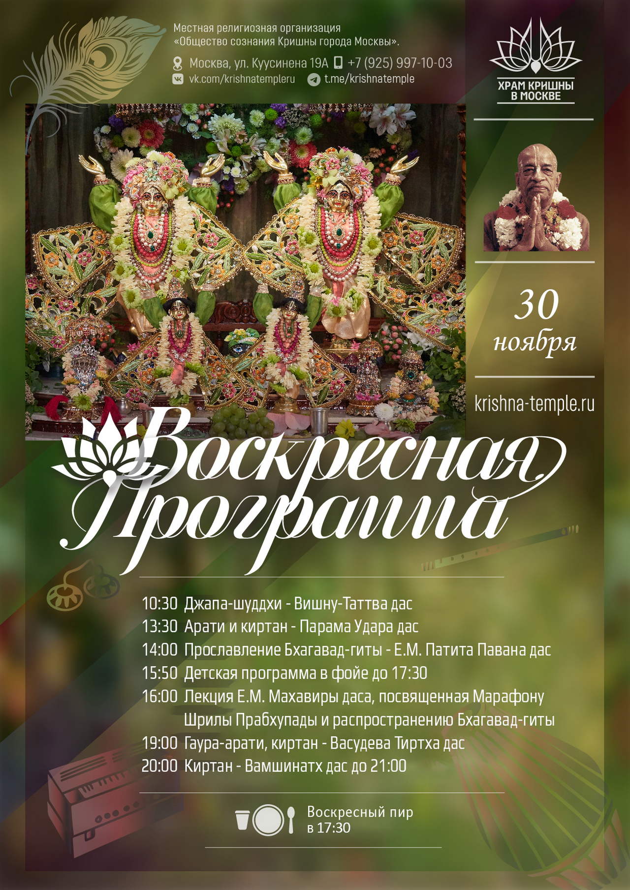 2. Воспользоваться сервисом онлайн-пожертвований на сайте Храма => https://d.krishna-temple.ru/ 3. Или через Систему быстрых платежей по номеру: