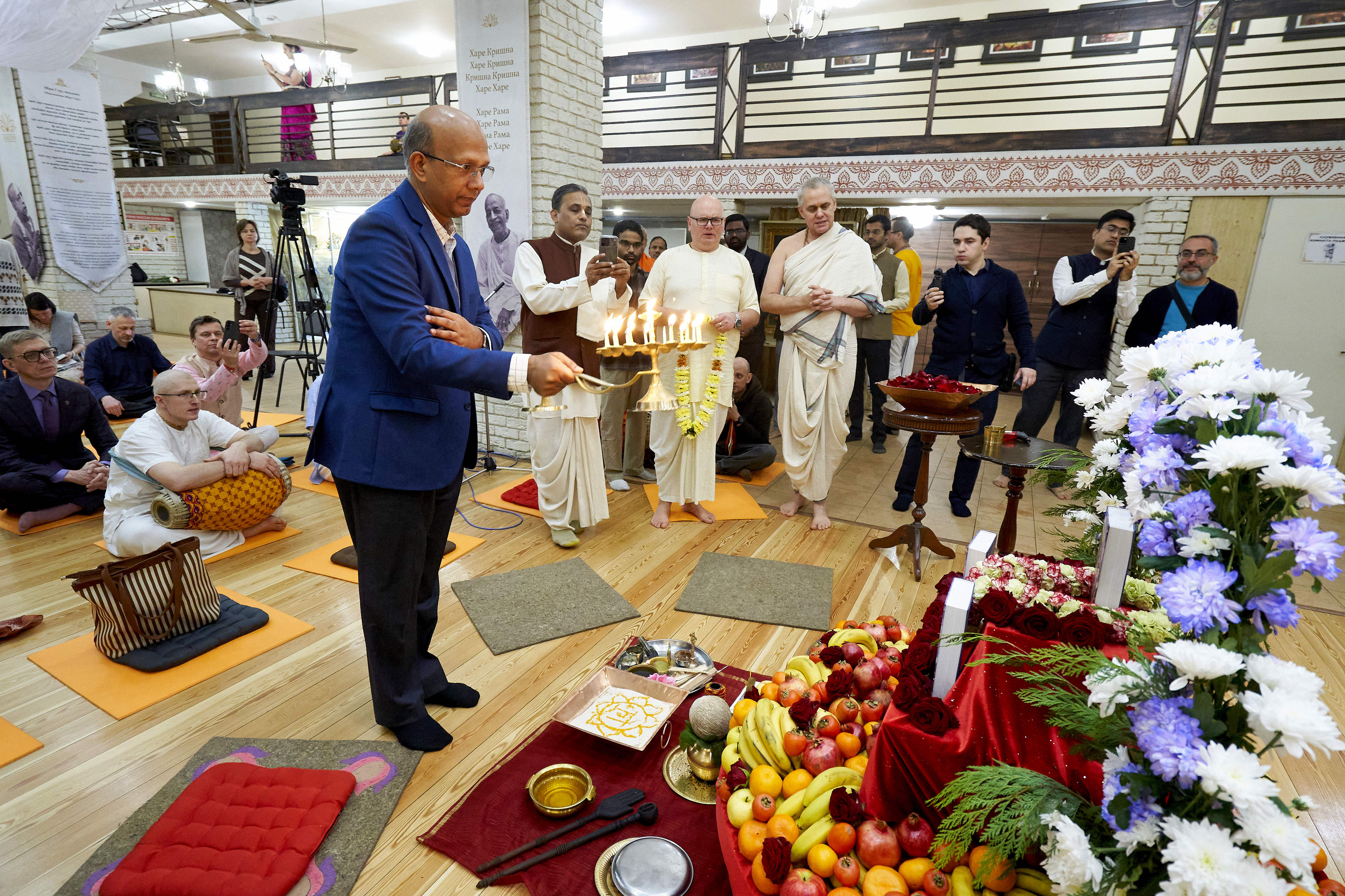 Наименование организации: Местная религиозная организация "Общество сознания Кришны города Москвы" ИНН: 7733190429 КПП: 771401001 ОГРН: 1117799025497 Расчётный счёт: 40703 810 7 3800 0003896 Банк получателя: ПАО Сбербанк БИК: 044525225 корр.сч: 30101 810 4 0000 0000225 ИНН: 7707083893 КПП: 773643001 Назначение платежа: "Добровольное пожертвование на уставные цели. НДС не облагается" (Важно! Назначение перевода на расчетный счет храма должно быть только таким).