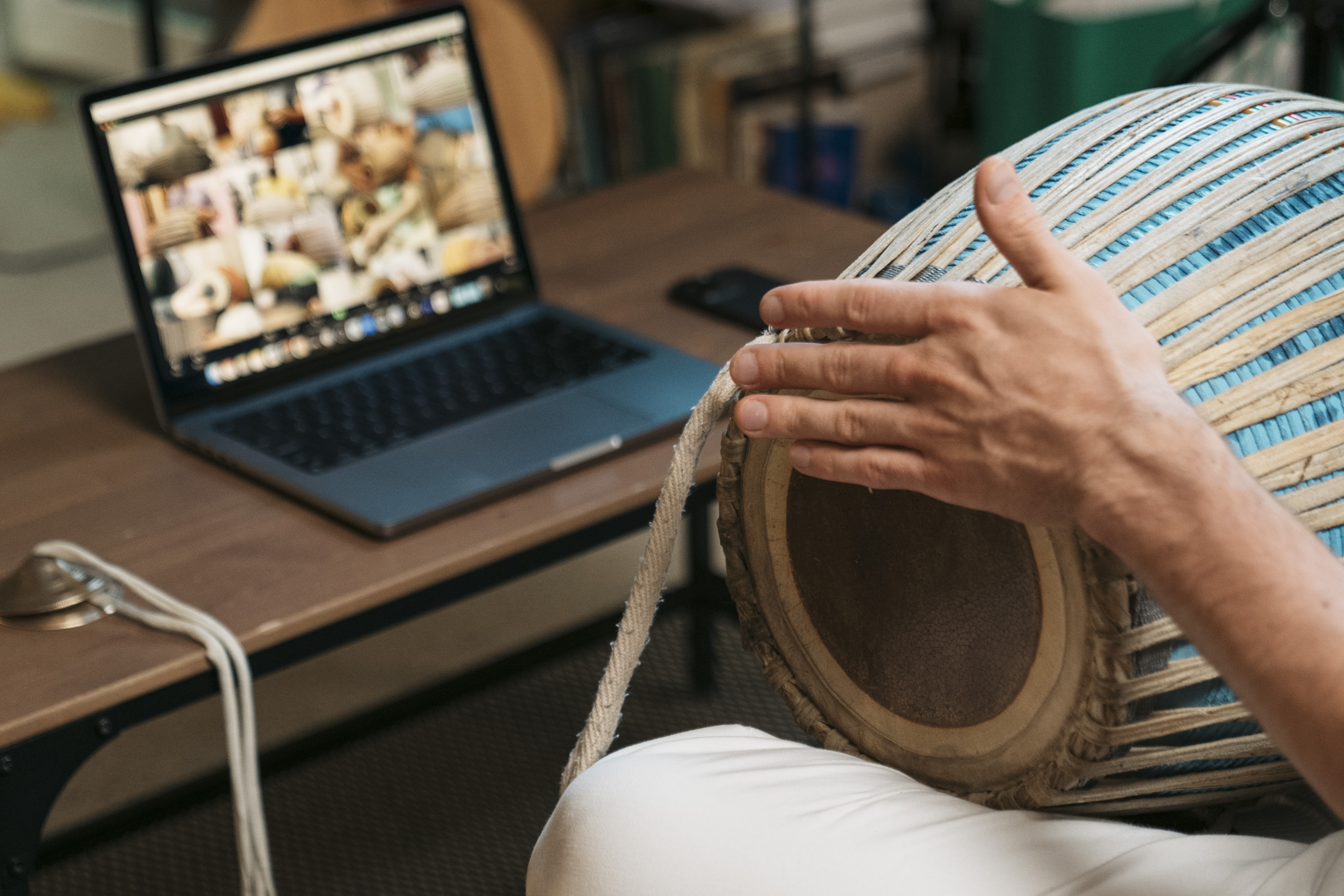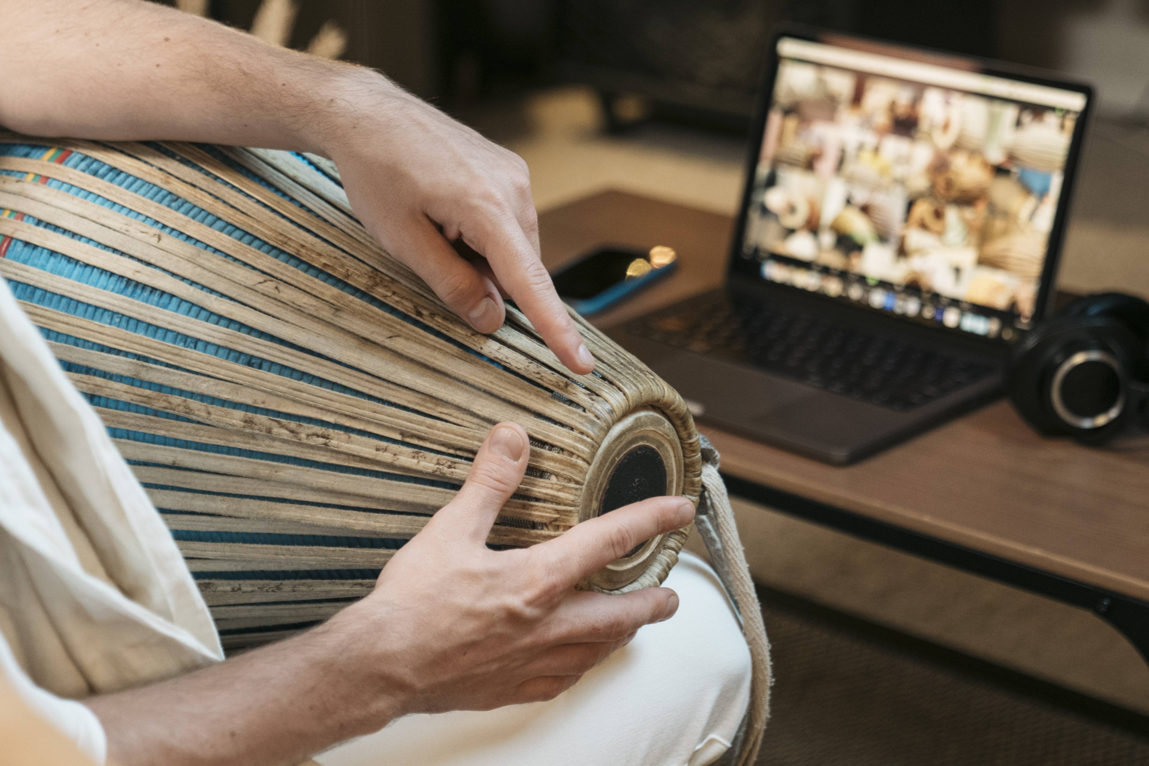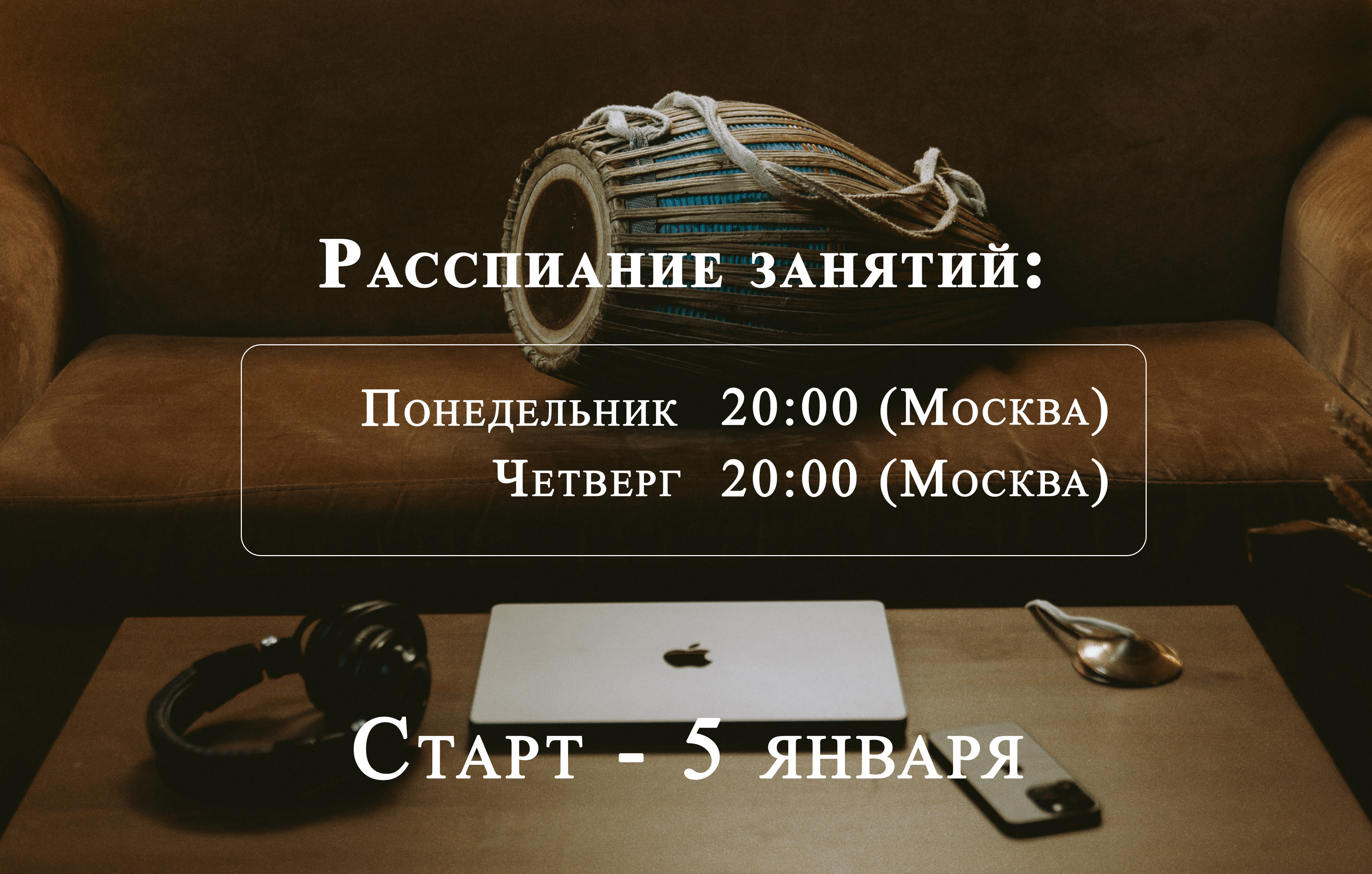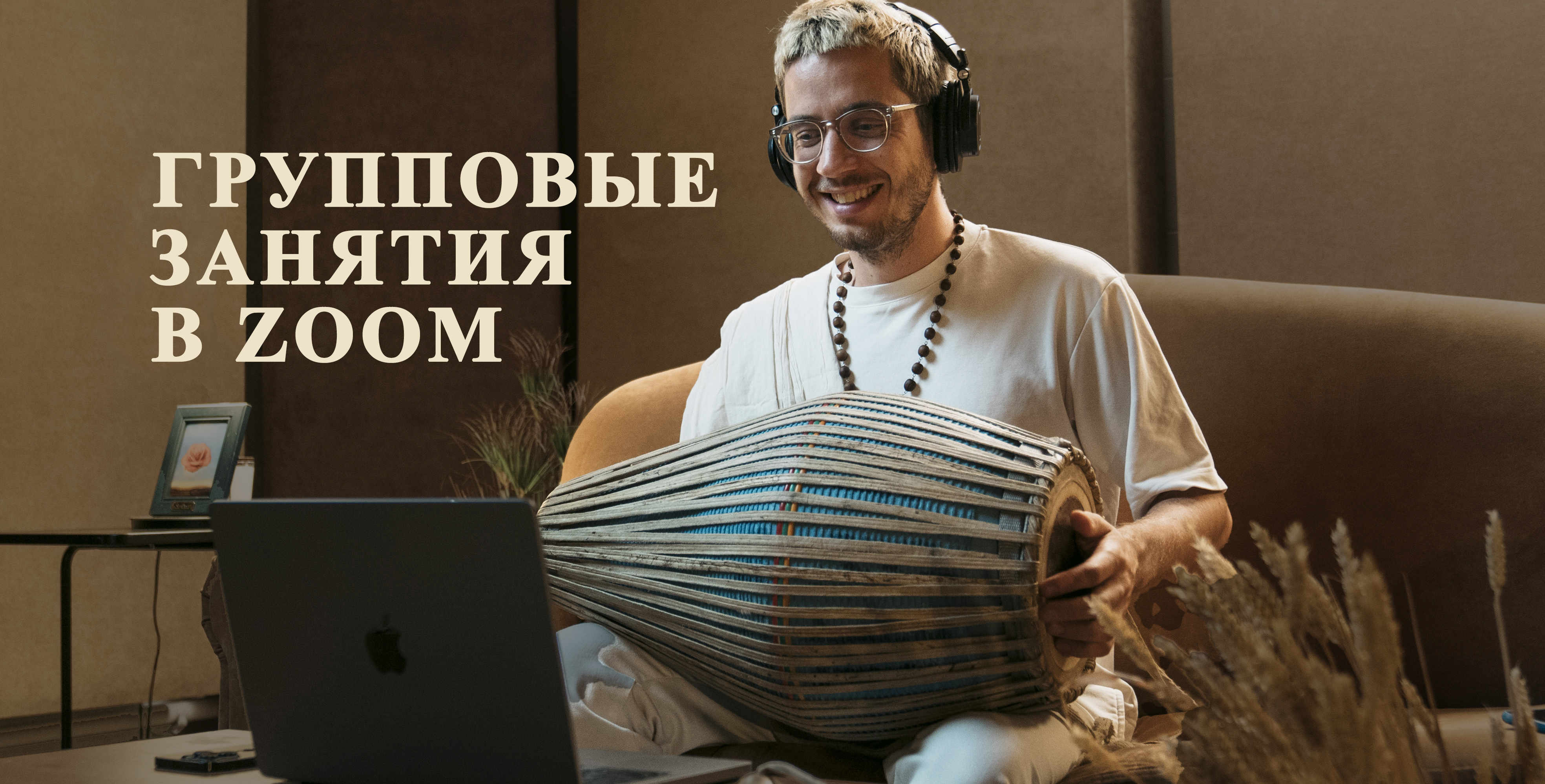 Это групповые занятия в Zoom каждый понедельник, четверг на которых мы будем обучаться азам игры на мриданге.
