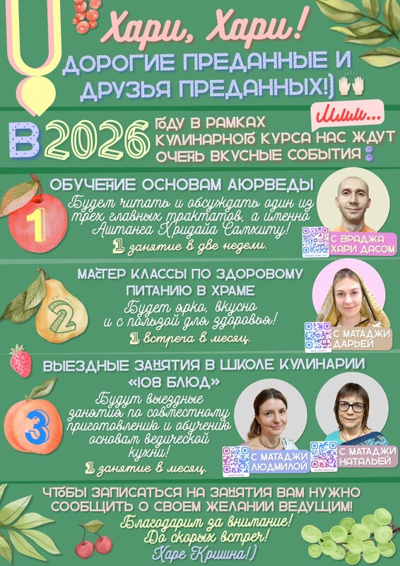 На занятиях мы познакомимся с одним из трех главных трактатов Аюрведы! С Аштанга Хридайа Самхитой! Стих за стихом, с комментариями и объяснениями практикующих преданных!)