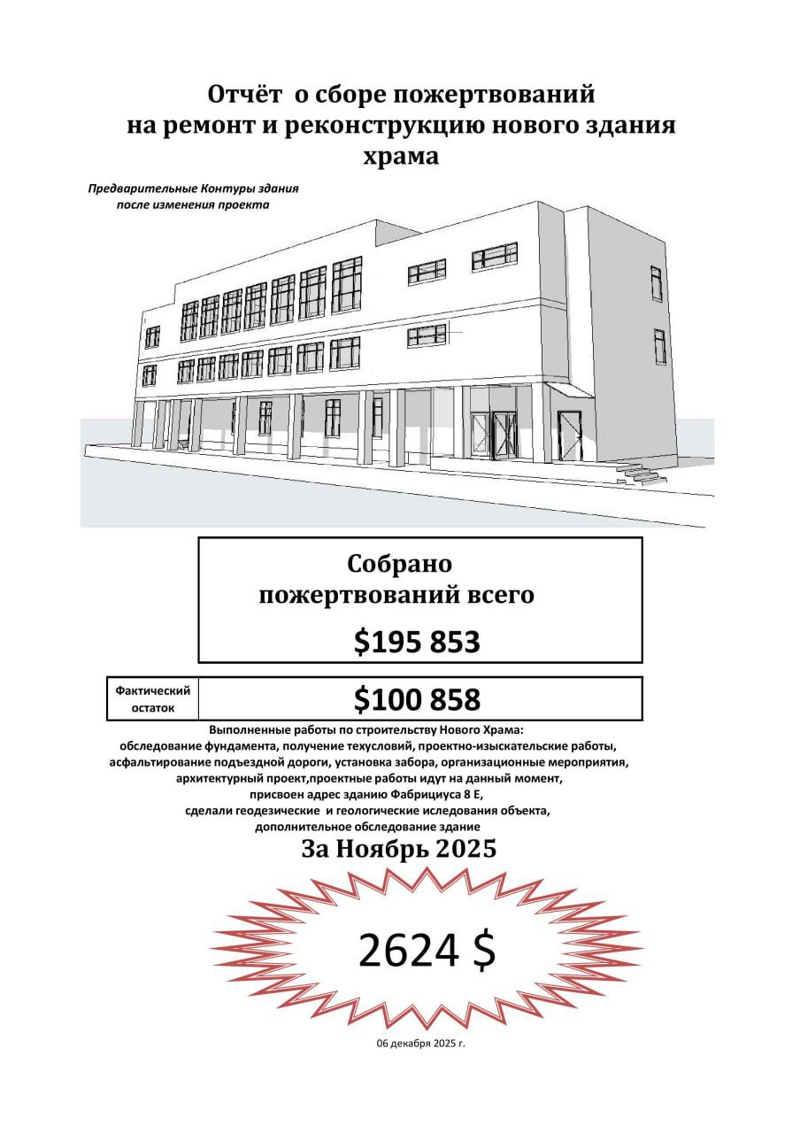 Всего собрано на храм: 195 853$/ фактический остаток: 100 858$