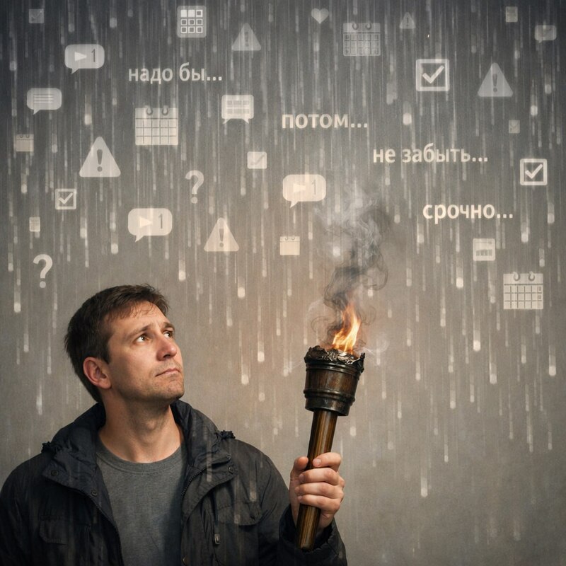 Даже полезное и важное знание не удерживается, если внимание постоянно уходит — под потоком мыслей, дел и отвлечений.