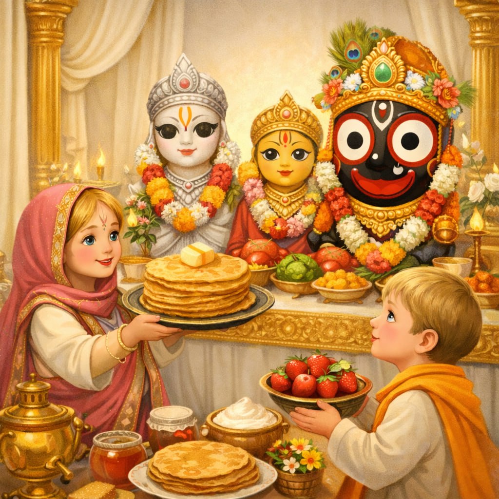 — подвижные и творческие игры, танцы и детские киртаны с профессиональными аниматорами; — совместное предложение Божествам блинов; — праздничное угощение для детей и родителей; — атмосфера благодарности, единства и радостного настроя. Через простые и понятные детям формы мы хотим помочь им почувствовать весеннее обновление, научиться благодарности и разделить радость служения вместе со всей общиной.