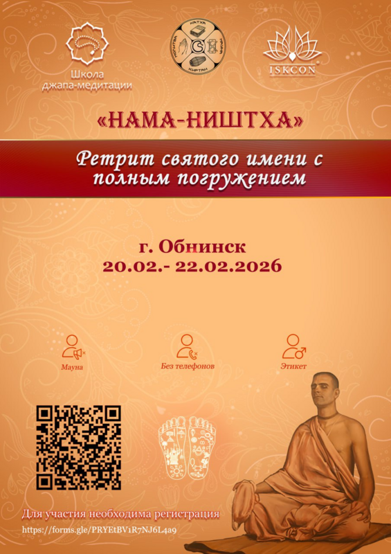 С радостью приглашаем вас с 20 по 22 февраля 2026г. на ретрит святого имени «Нама-ништха» недалеко от Москвы.