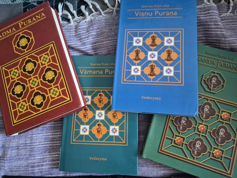 Также книги на английском языке "Истории из Вишну-пураны", "Истории из Вамана-пураны", "Сканда-пурана" и "Падма-пурана".