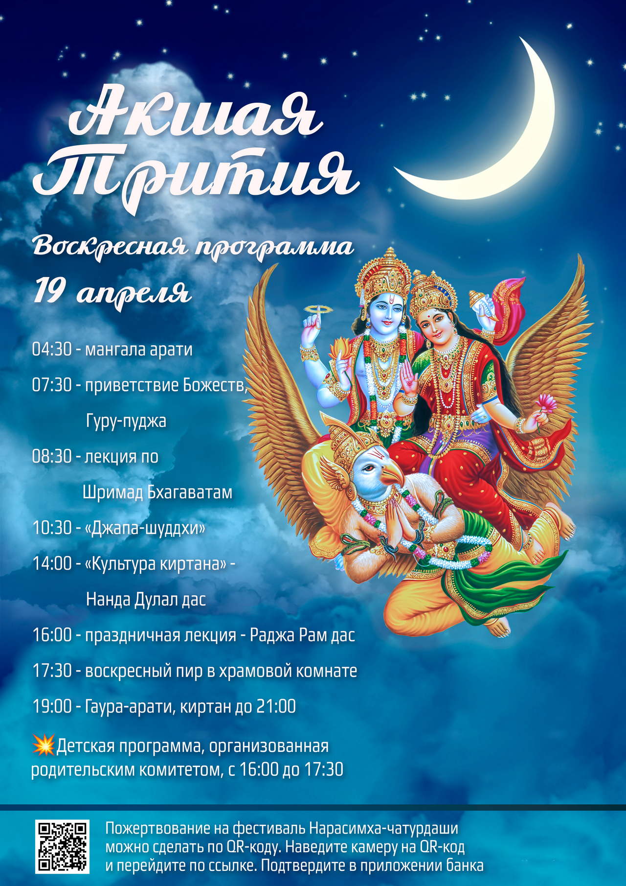 И во многих других храмах в этот день проходят большие праздники. Поэтому мы выбрали день Акшая-трития для просьбы о вашей поддержке праздника Нарасимха-чатурдаши! ✏️ Также мы будем благодарны, если вы присоединитесь к программе «Я поддерживаю Храм»: https://d.krishna-temple.ru/anketa